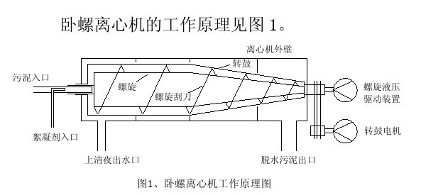 臥螺離心脫水機(jī)具有分離效果良好、工作效率高、使用管理維護(hù)簡(jiǎn)單方便的特點(diǎn),并且臥螺離心脫水機(jī)采用全封閉的結(jié)構(gòu),避免了帶式壓慮機(jī)存在的種種弊端(如現(xiàn)場(chǎng)環(huán)境惡劣、臭味大、大量使用絮凝劑和清洗水、設(shè)備體積大、日常使用維護(hù)麻煩),目前在污水處理、食品、醫(yī)藥、化工等領(lǐng)域的固液分離中得到廣泛的應(yīng)用,本研究根據(jù)生產(chǎn)實(shí)踐,探索了速差、工作壓力等控制條件對(duì)污泥脫水效果影響的變化規(guī)律,總結(jié)了使離心機(jī)的穩(wěn)定運(yùn)行的調(diào)整方法。