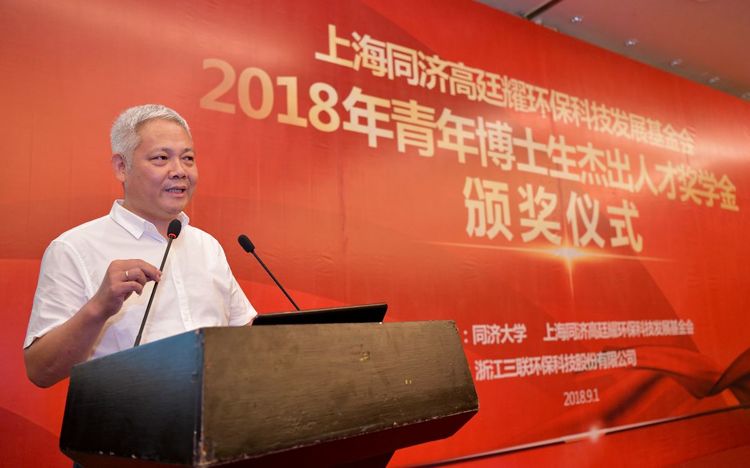 方守恩書記在致辭中代表同濟大學(xué)對獲獎的各位優(yōu)秀青年博士生表示祝賀,對給予此次活動大力支持的浙江省麗水市人民政府、麗水市恒力離心機械設(shè)備有限公司以及長期支持基金會不斷發(fā)展的江蘇維爾利環(huán)??萍脊煞萦邢薰颈硎局孕牡母兄x。他說,基于對生態(tài)文明建設(shè)和環(huán)境保護重要性的認識,在高廷耀老校長的倡議下,同濟大學(xué)于2003年正式成立了上海同濟高廷耀環(huán)??萍及l(fā)展基金會。十五年來,基金會始終不忘初心,積極致力于“培養(yǎng)新一代環(huán)保專業(yè)新型人才;促進中國環(huán)保高新技術(shù)(產(chǎn)品)的研制和科技交流與發(fā)展”,為我國高級環(huán)保青年人才培養(yǎng)和環(huán)保產(chǎn)業(yè)可持續(xù)發(fā)展,發(fā)揮了積極的推動和引導(dǎo)作用。黨的十九大報告提出,實現(xiàn)“兩個一百年”奮斗目標(biāo)和中華民族偉大復(fù)興的中國夢,是要把我國建成富強民主文明和諧美麗的社會主義現(xiàn)代化強國。美麗中國建設(shè),需要各級政府、企業(yè)和高校持續(xù)不懈的努力,更需要青年一代切實承擔(dān)起應(yīng)有的歷史責(zé)任。